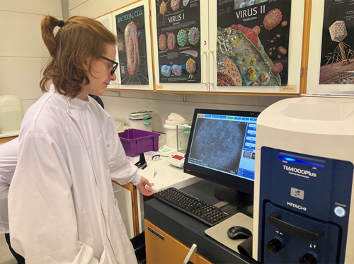 The partnership has been formed to facilitate the use of a Scanning Electron Microscope (SEM), which produces images of a sample by scanning the surface with a focused beam of electrons. Using this state-of-the-art equipment has allowed our Finnart Street campus based Science students to study hair samples, fibres, and animal skins in detail they could never have imagined.